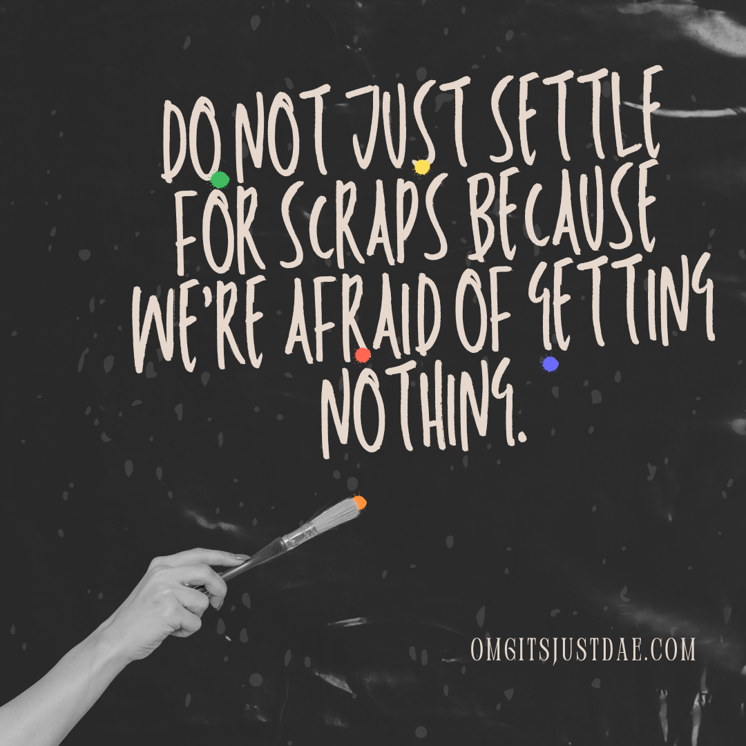 Do not just settle for scraps because we’re afraid of getting nothing.